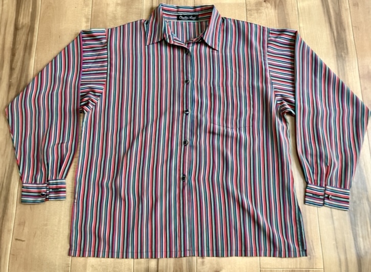 - ヴィンテージ マルチストライプ ポリエステルブラウス 90s