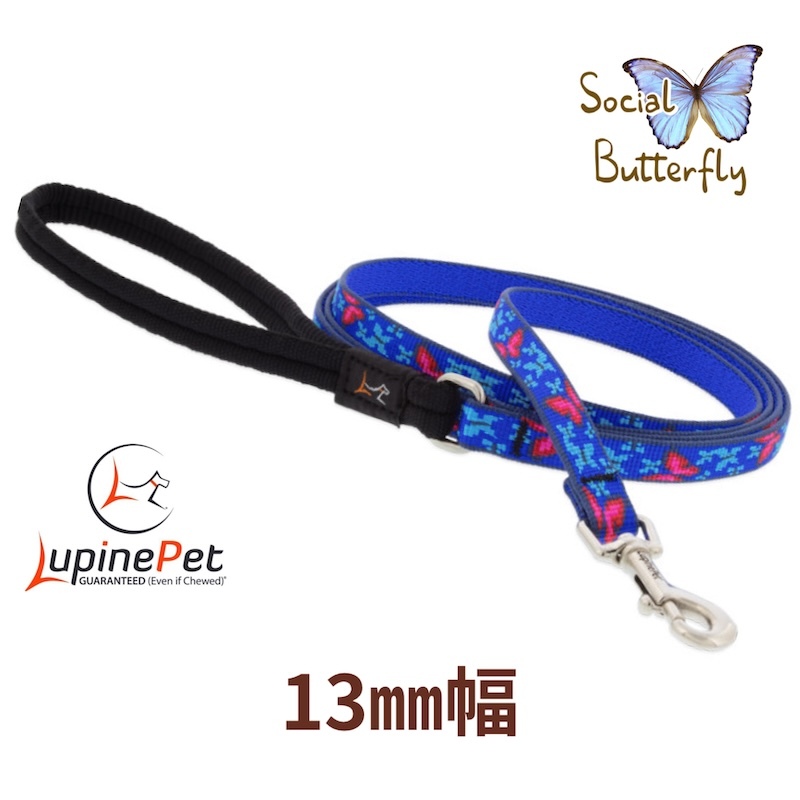 > ソーシャルバタフライ柄 13mm幅120cmリード パッド付き LUPINE アメリカ製 軽量 丈夫 小型犬向け ルパイン