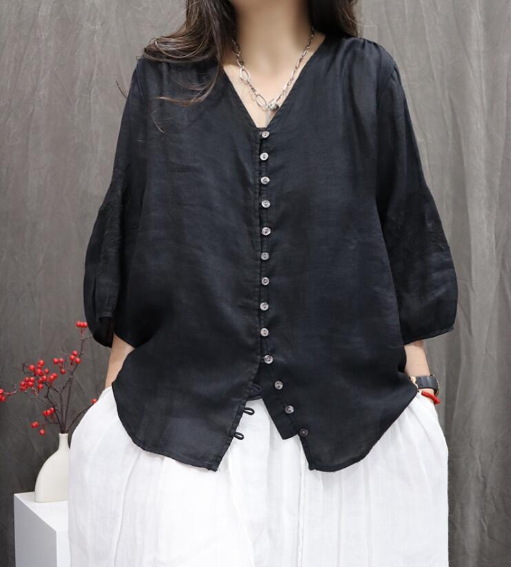 - 同梱1万円送料無料■レディース ロングシャツ シャツ チュニック お花 刺繍り ブラウス ナチュラル 着痩せ ゆったり 体型カバー■ブラック