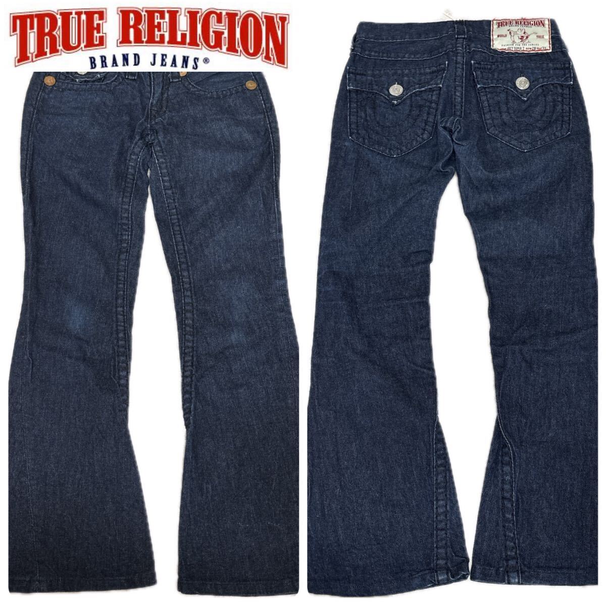 - 【USA製 極美品 大ボタン リベット】TRUE RELIGION JOEY SUPER T 濃紺 ブーツカット デニムパンツ サイズ28 トゥルーレリジョンローライズ