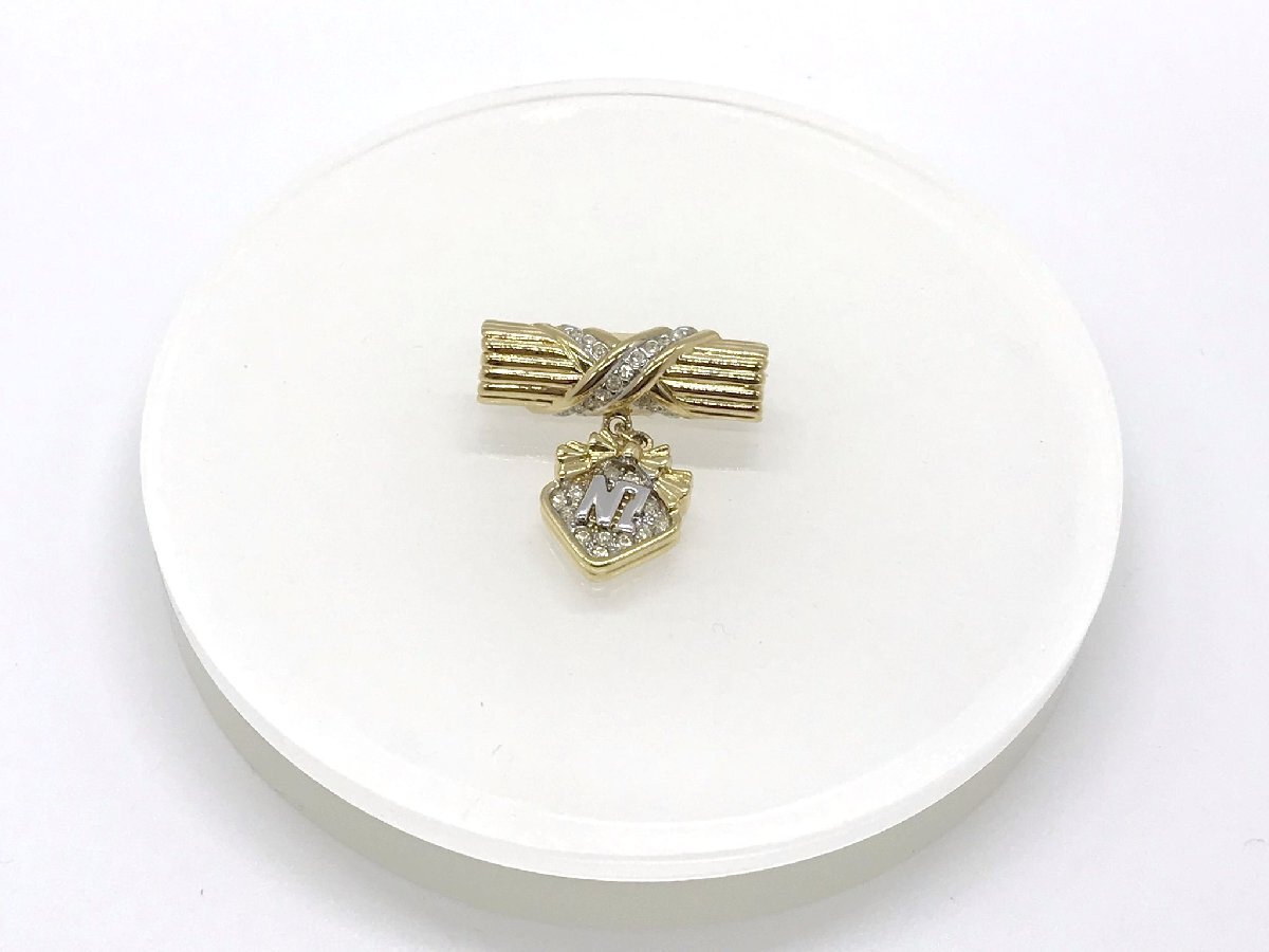 - ■【YS-1】 状態良好 ■ ニナリッチ NINARICCI ロゴ ブローチ ■ ラインストーン クリア × GP ゴールド系 全長3cm 【同梱可能商品】■D
