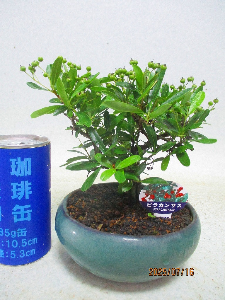 - [緑の市場] ミニ盆栽 ピラカンサ 実付(71557丸鉢)全高:18㎝【小型送料】*同梱包対応「まとめて取引」厳守*60サイズ送料明記