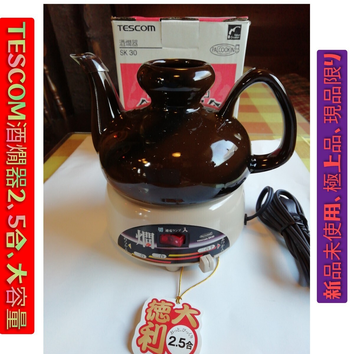 > TESCOM酒燗器、SK30、熱燗、ぬる燗、スライドバーで温度調節可、冷めにくい厚めの陶器製、大容量2.5合、現品限り、送料無料、お値打ち品