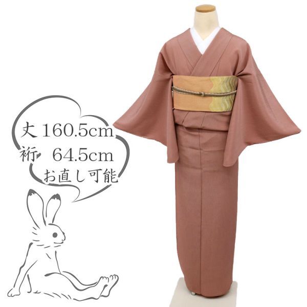 > 【色無地】 単衣 洗える高級着物 『きもの英』 楊柳地 赭色 背紋有 IC3-4