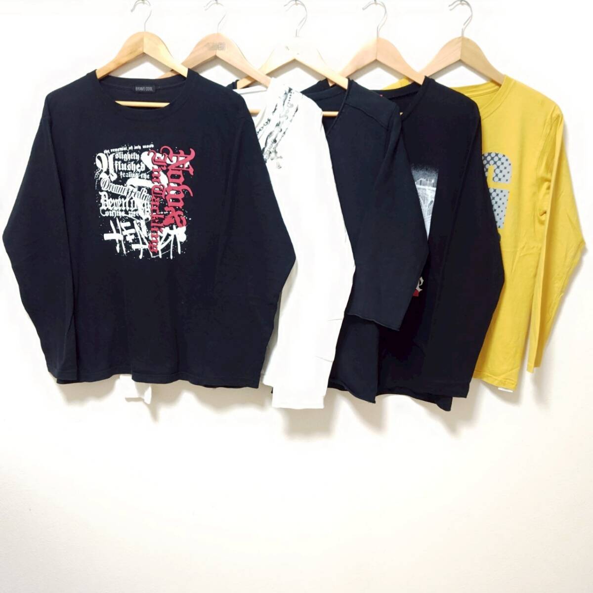 - お得!!【まとめ売り】長袖 Tシャツ 5着セット ラウンジリザード BRAVE COOL Y2K プリント 無地 ロンT カットソー 白 黒 黄色 L/Y34499j