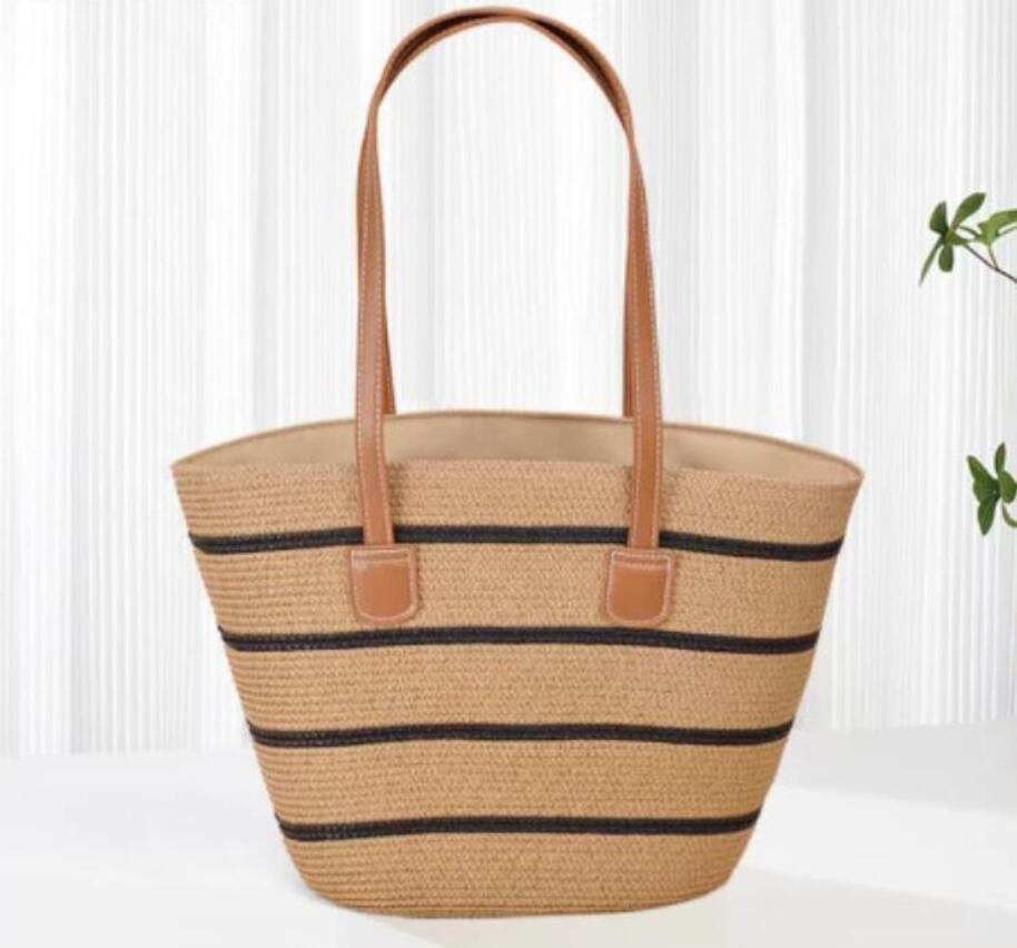 - 人気推薦 / レディース 麦わら風 かご風 ストローバッグ ナチュラル かわいい 大容量 軽い 夏バッグ ストライプ ワンサイズ / 柄1