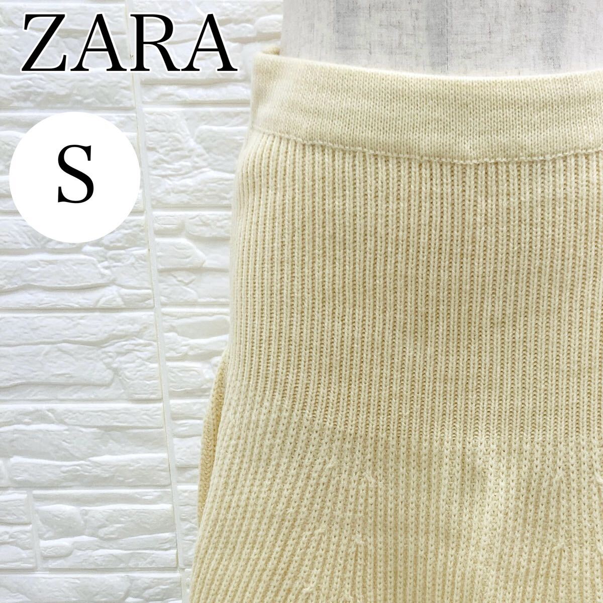 - 【AA4004】 ZARA ザラ Sサイズ ボトムス ミニ スカート リブ ニット アイボリー フレア レディース ウエストゴム ウーマン カジュアル