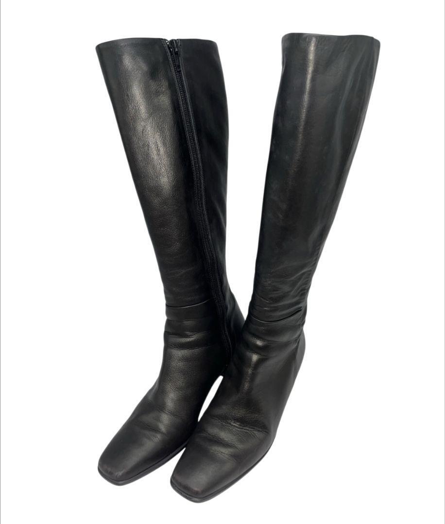 - 【pitti】スクエアトゥ☆サイドジップ☆2E☆日本製☆ロングブーツ☆ヒールブーツ☆黒☆ブラック☆ピッティ☆レディース靴