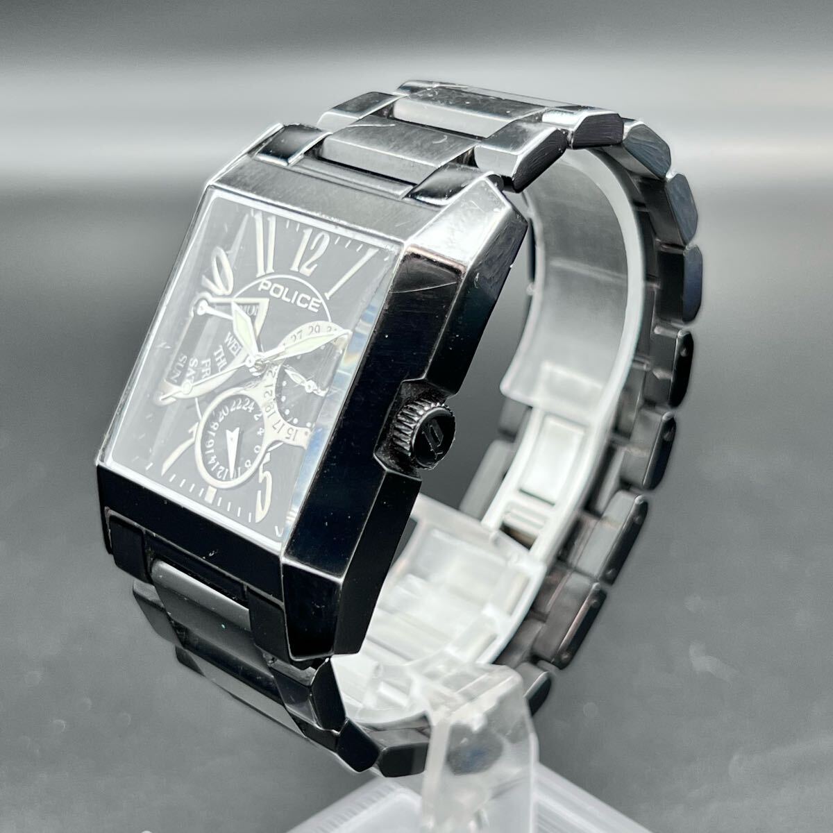- 動作未確認 POLICE ポリス 腕時計 クォーツ 10966M 黒文字盤 スクエア クロノグラフ g7-144