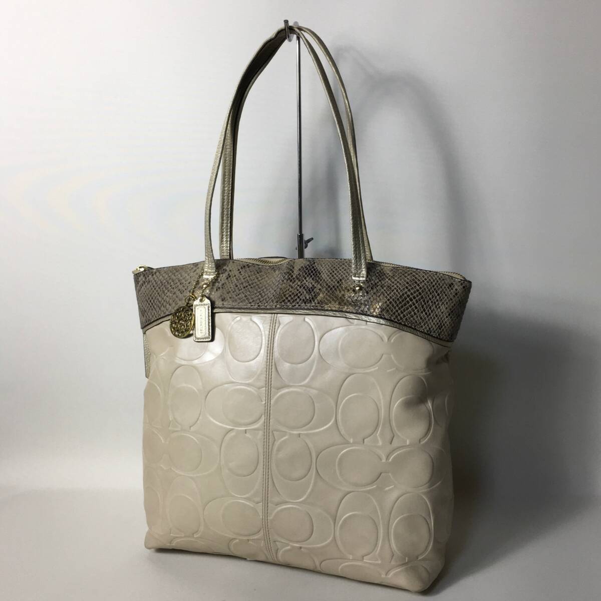 - 2507-132|コーチ シグネチャー トートバッグ レザー ベージュ パイソン