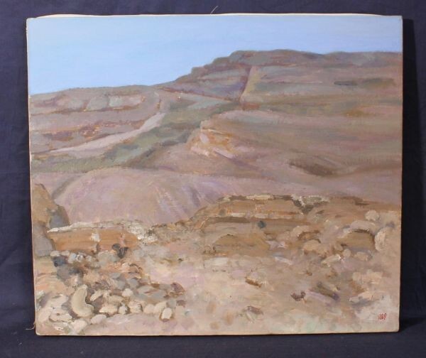 - 竹林潤 「パチャカマ(ペルー風景)」 F10号 油彩 サイン入 真作 広島の画家 キャンバスのみ D459