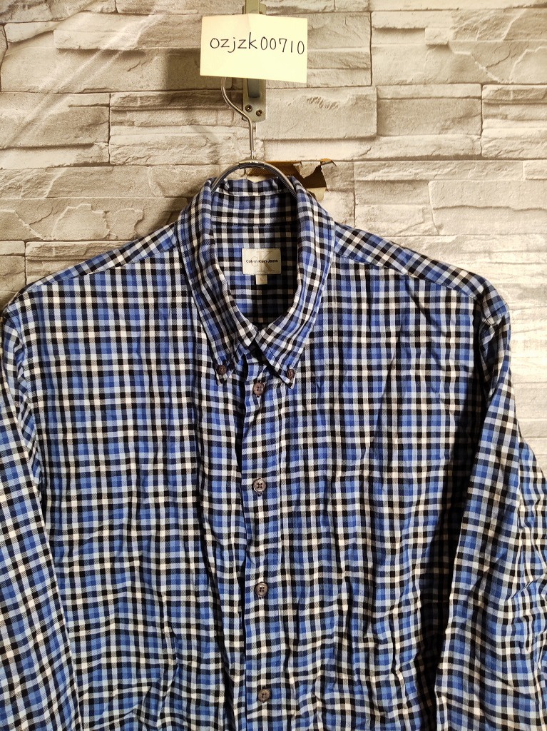 - men's J73 Calvin Klein Jeans カルバンクラインジーンズ チェック柄 長袖 シャツ L ブルー系 ネコポス発送可