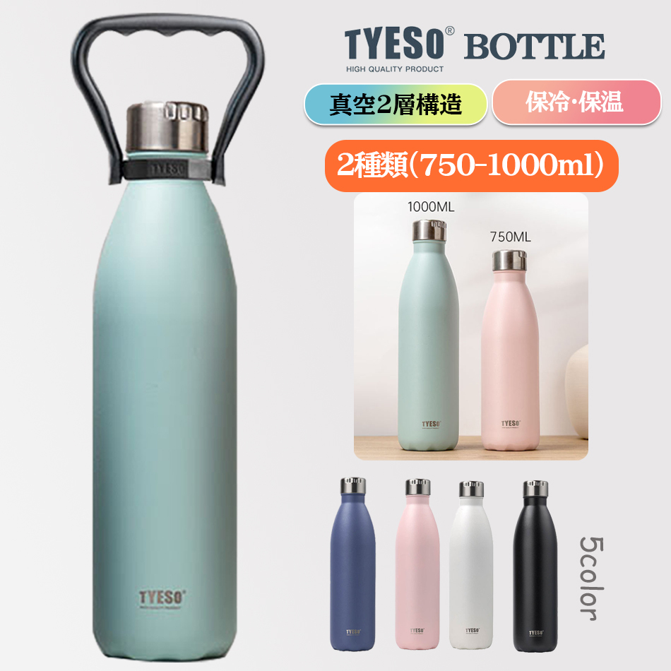 - 『ブラック750ml』TYESO水筒アウトドア水筒スポーツボトルステンレスボトル直飲み保温保冷大容量キャリ―ハンドル付き水筒 真空断熱qs-096