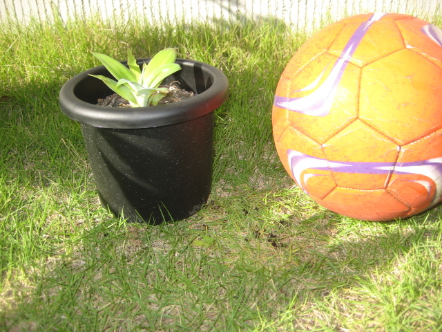 - アガベ アテナータ 7月撮影 鉢付き 土付き サッカーボール4号比較 越冬 元気