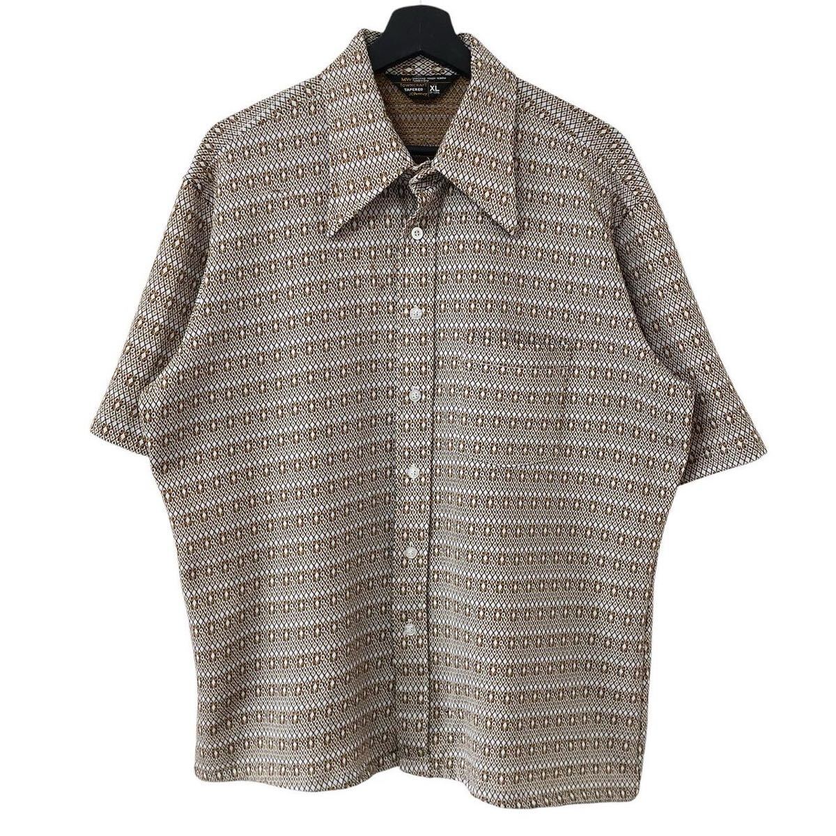 > ■激レア■70s JC PENNY TOWN CRAFT JACQUARD S/S SHIRT XL ジェーシーペニー タウンクラフト ジャガード ポリ 半袖シャツ 総柄 ビンテージ