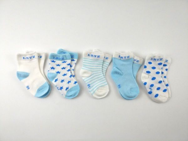 - キッズ ソックスパック 5足 ボーダー ドット 0-1歳 ブルー スリッポンスニーカーにおすすめ 靴下