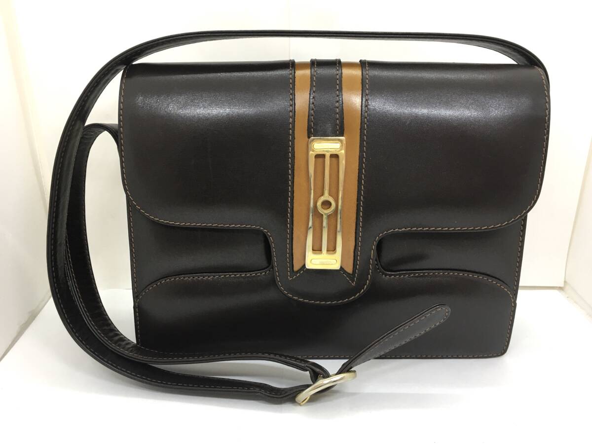 - ショルダーバッグ イタリア製 ダークブラウン×キャメル 昭和レトロ