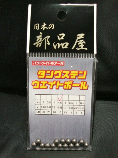 - 送料無料☆新品 日本の部品屋タングステン ウエイトボール 4.5mm 0.88g/1個 15個入オモリ日本製ウェイト ハンドメイド玉ルアーミノーおもり