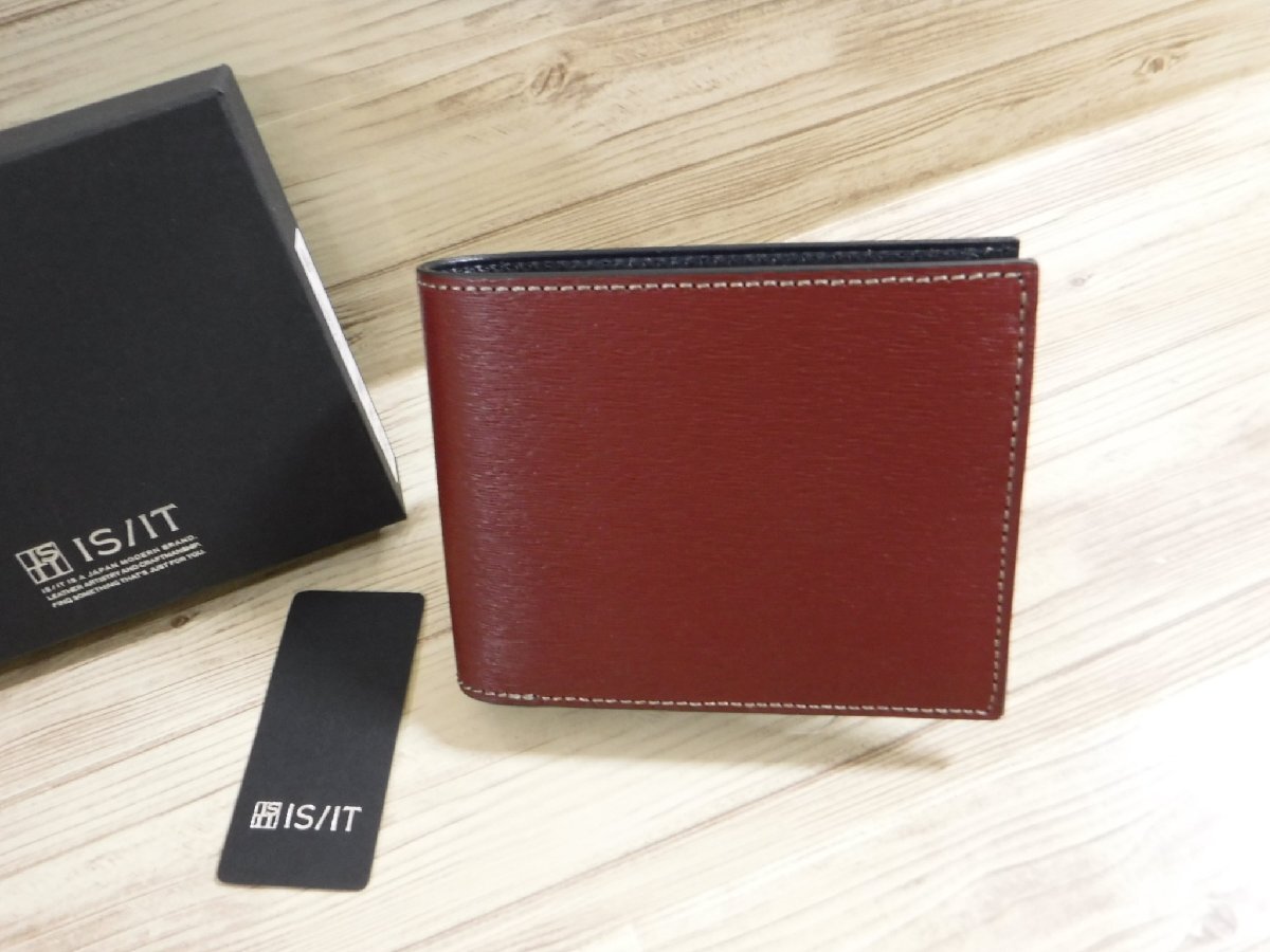 - QQ509 イズイット 定価1万3200円 新品 ワイン 二つ折り財布 タンニン牛革 IS/IT 971605 フジタカ製造 イケテイ製 IKETEI