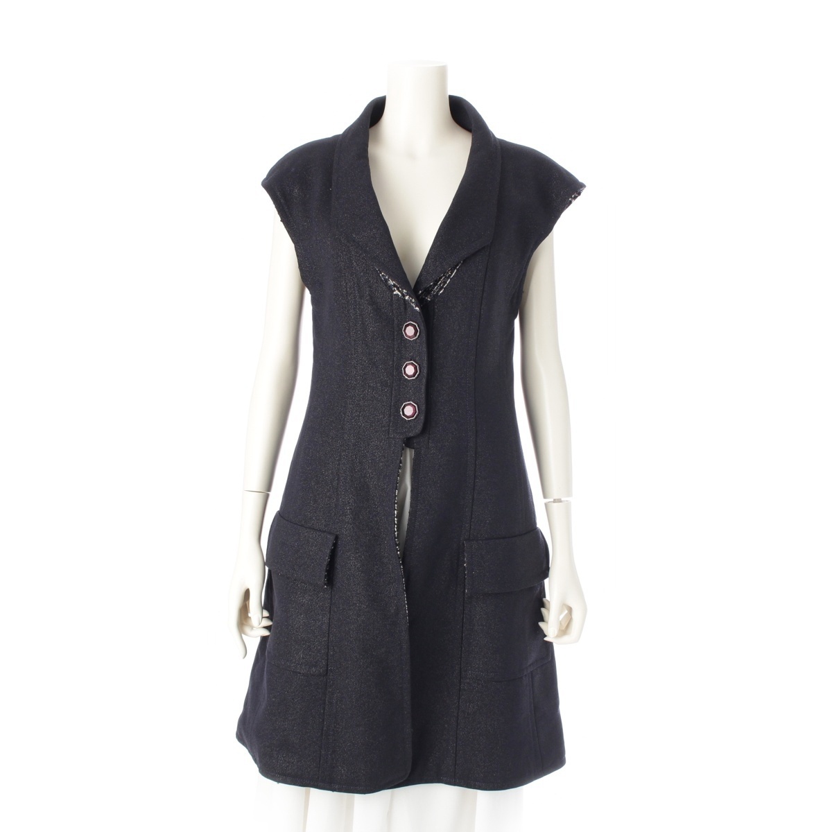 > シャネル 12A ウール×ナイロン カラーストーンボタン 裏地ツイード ノースリーブ ワンピース ベスト コート P44673 ネイビー 36【中古】