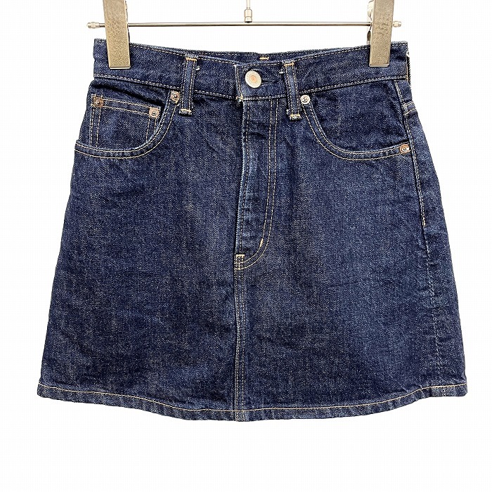 > スライ SLY デニム ミニスカート 台形 フロントファスナー 裏地無し 日本製 綿100% コットン100%(ラベル:牛革) 0 ブルー 青 レディース