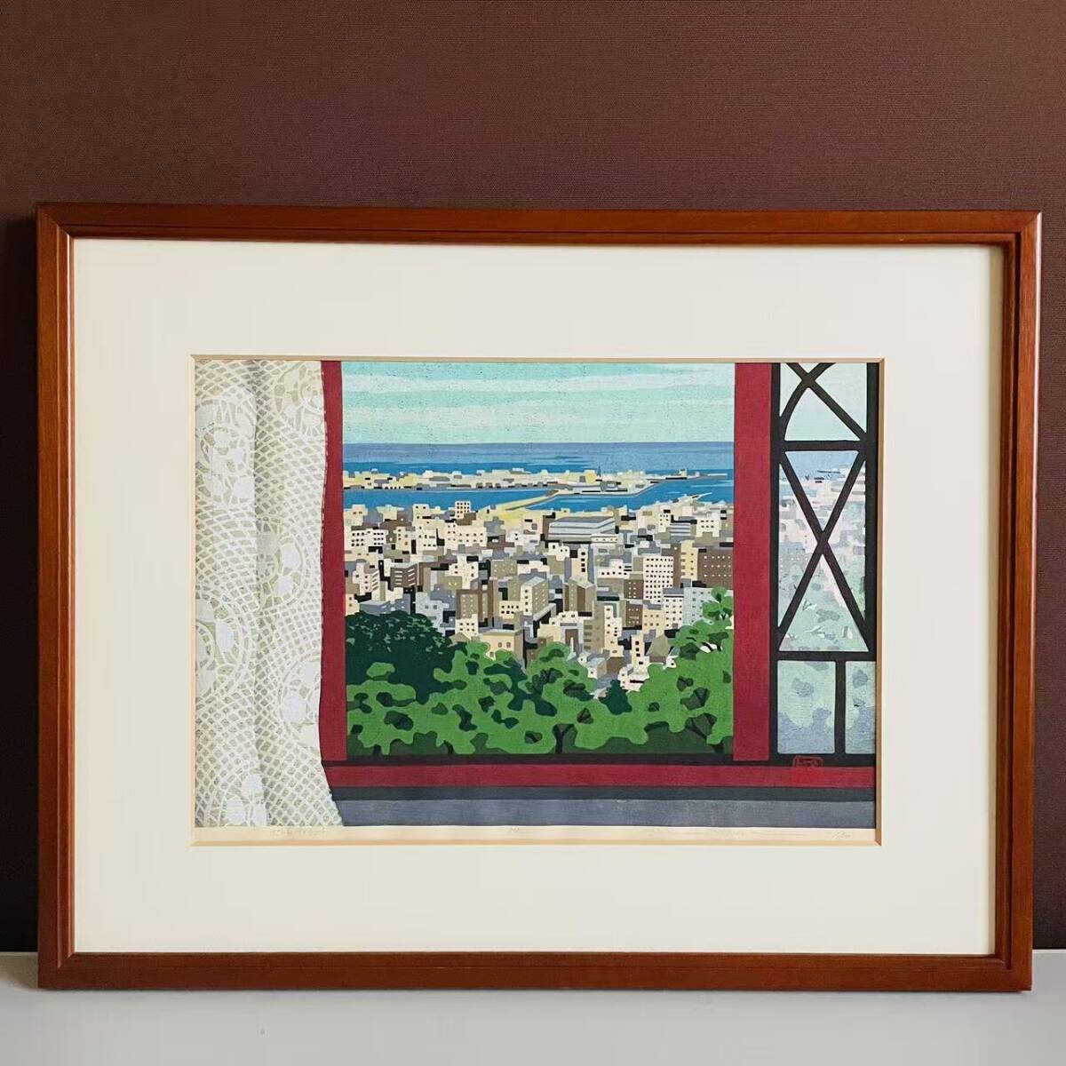 - 真作保証 井堂雅夫 手摺木版画 『ポートアイランド』 限定22/150 直筆サイン 風景画 額装