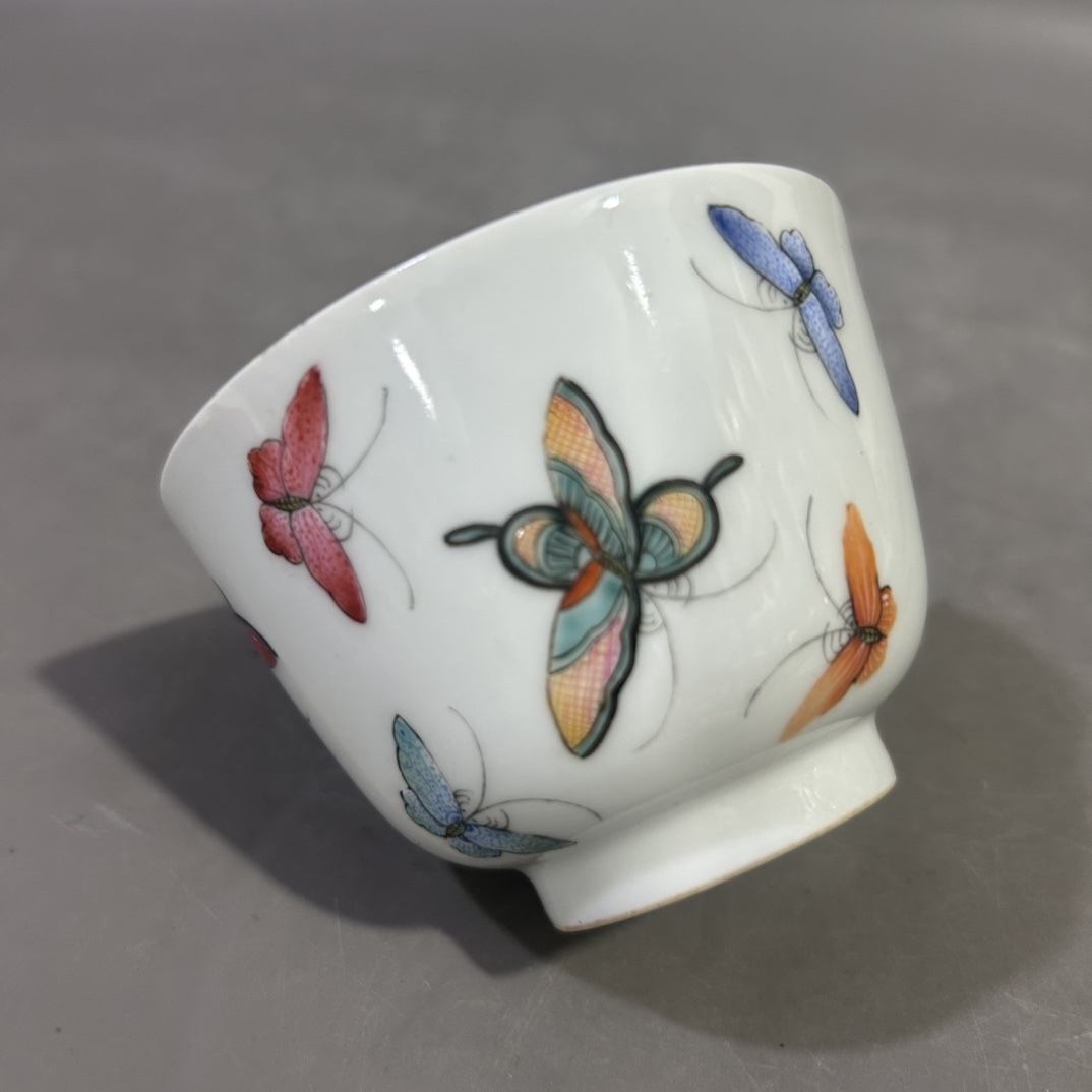 - ■BC145■大清光緒年制款 粉彩の蝶紋杯 時代物 古玩 唐物 古陶磁器■