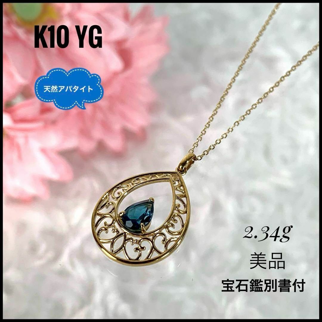 - 美品 K10 YG 天然アパタイト ネックレス スルーチェーン 宝石鑑別書付き
