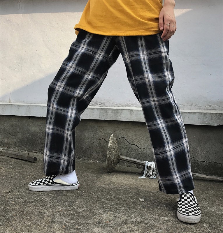 > ラスト3点 新品 コットン素材 チェック柄 ロングパンツ ストレート イージーパンツ ズボン 男女兼用 処分品 即購入OK 【値下げ不可