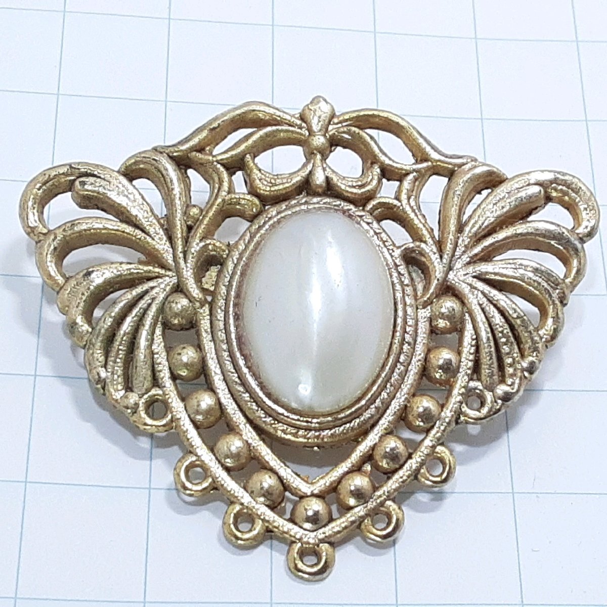 - 送料無料)ビンテージ☆パール エンブレム☆アンティーク ブローチ A31196