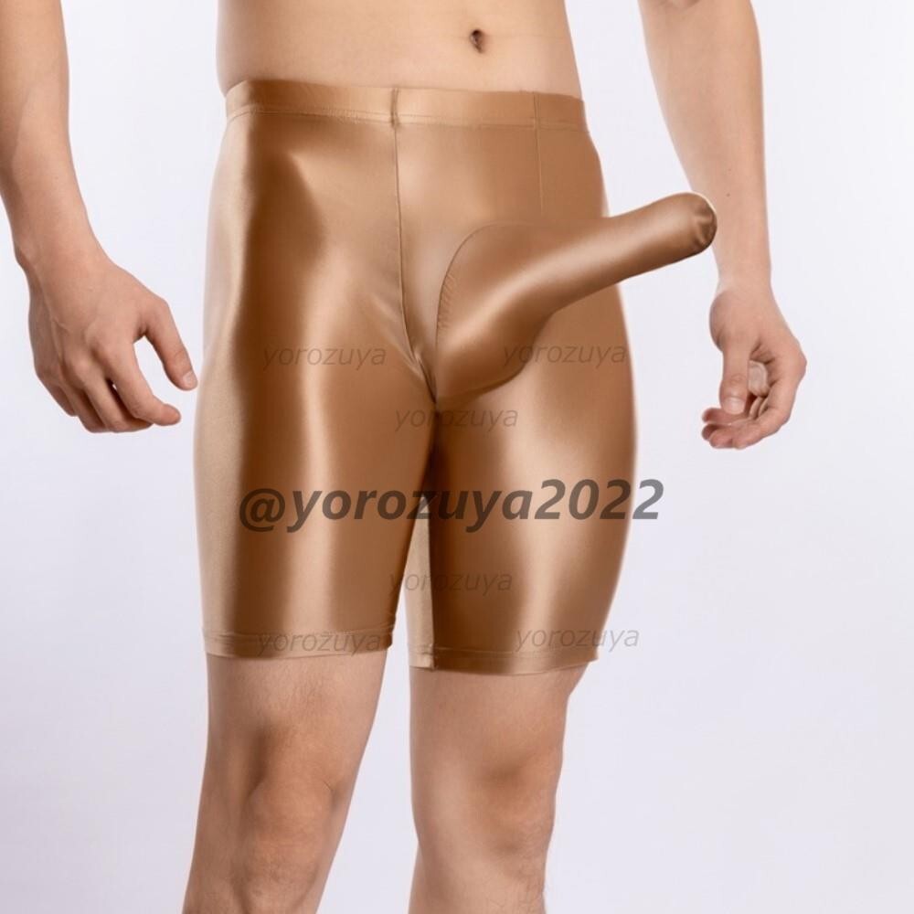 > 181-241-23 ツヤツヤ 光沢 サオ付き ボクサー スパッツ【ブラウン,Lサイズ】男性 メンズ 勃起パンツ ランジェリー ブリーフ ショーツ.2