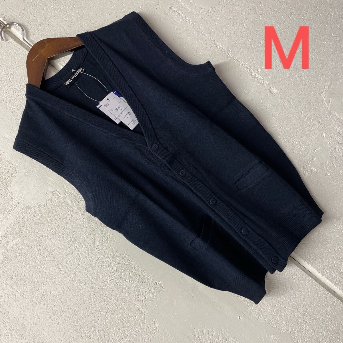 - Mサイズメンズお家で洗えるウール混ニット前ボタンベスト ネイビー