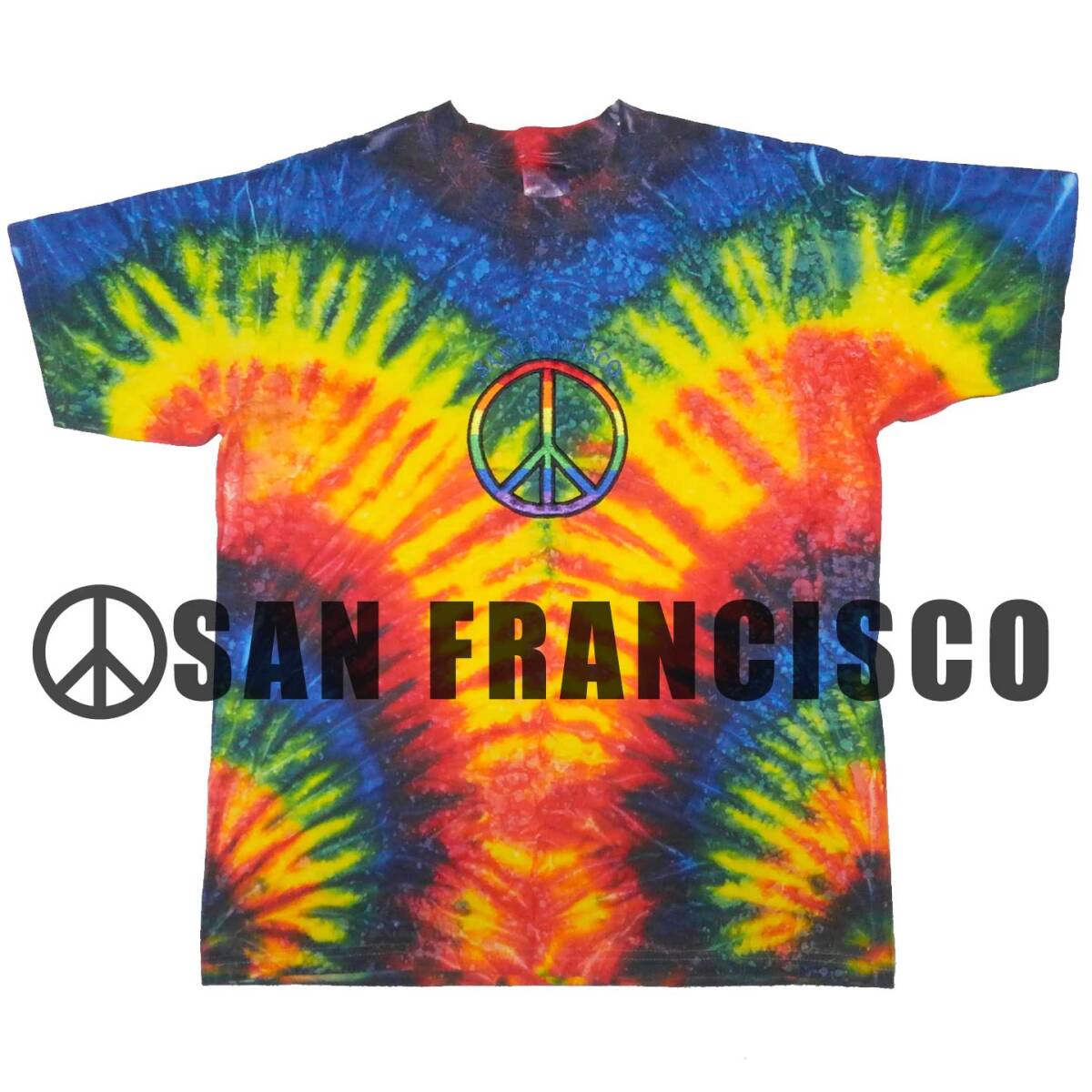 > サンフランシスコ ピースマーク 刺繍入り タイダイ Tシャツ ★ 古着 レインボー レゲエ フェス アウトドア キャンプ SAN FRANCISCO