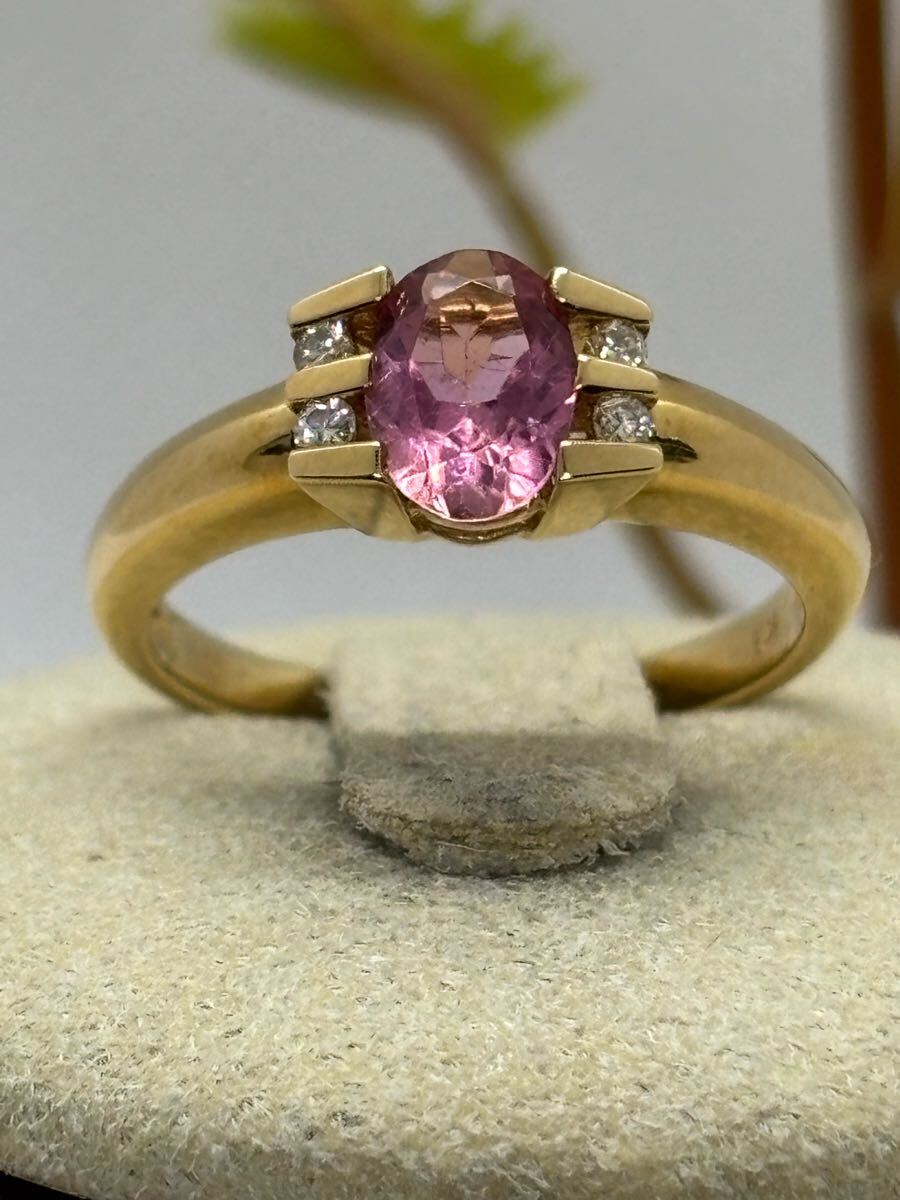 - K18 天然トルマリン 天然ダイヤモンド宝石鑑別書 11号指輪リング(867) ダイヤモンド K18 リング 指輪
