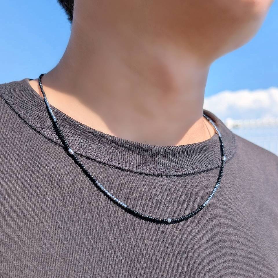 > 人気デザイン K18WG ホワイトゴールド マルチ&ナツメカット ブラックスピネル テラヘルツ ネックレス エナジーストーン 長さ調整可能