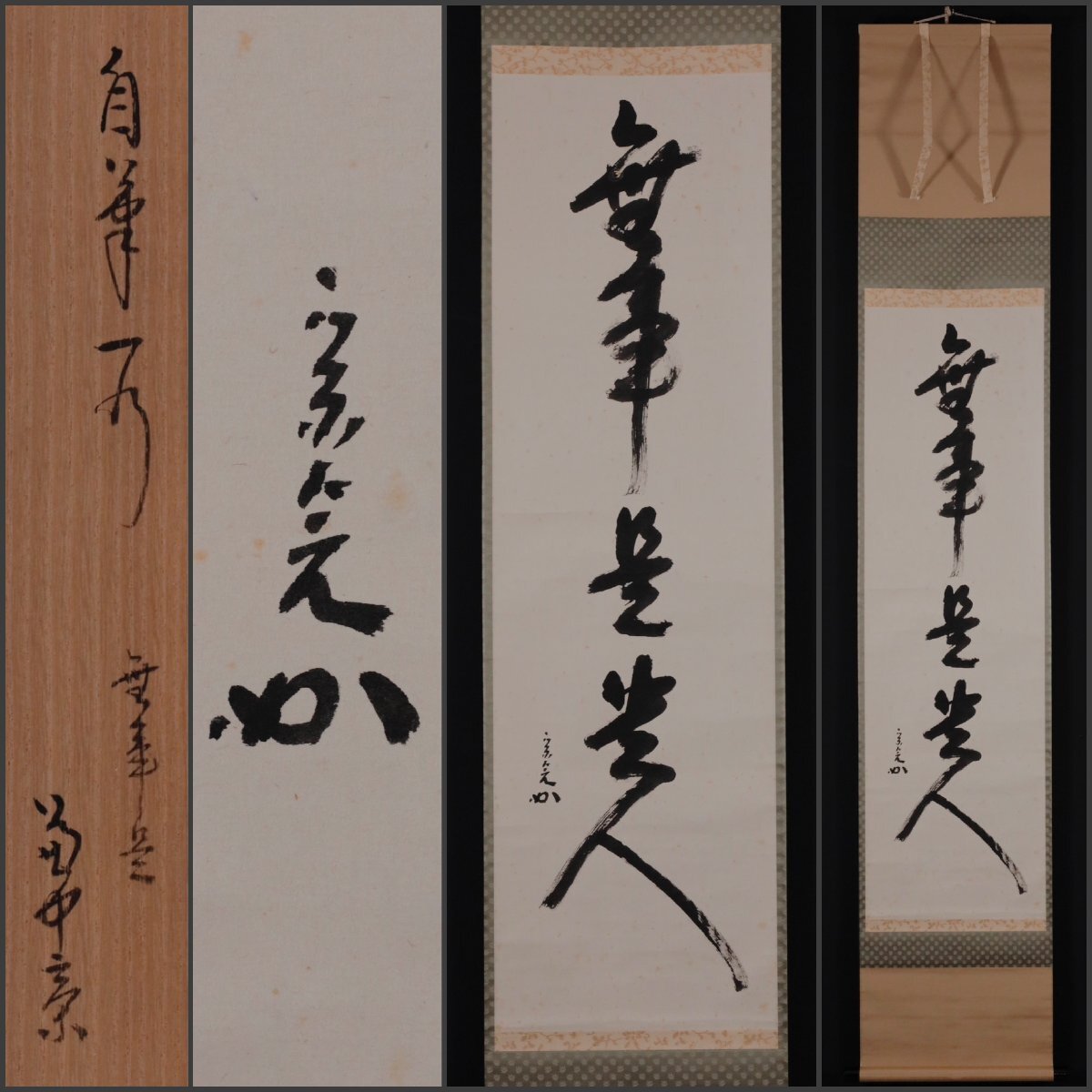 - 【模写】吉】12686 堀内宗完 書「無事是貴人」 共箱 表千家流 堀内家12代 長生庵 兼中斎 茶掛け 茶道具 禅語 掛軸 掛け軸 骨董品