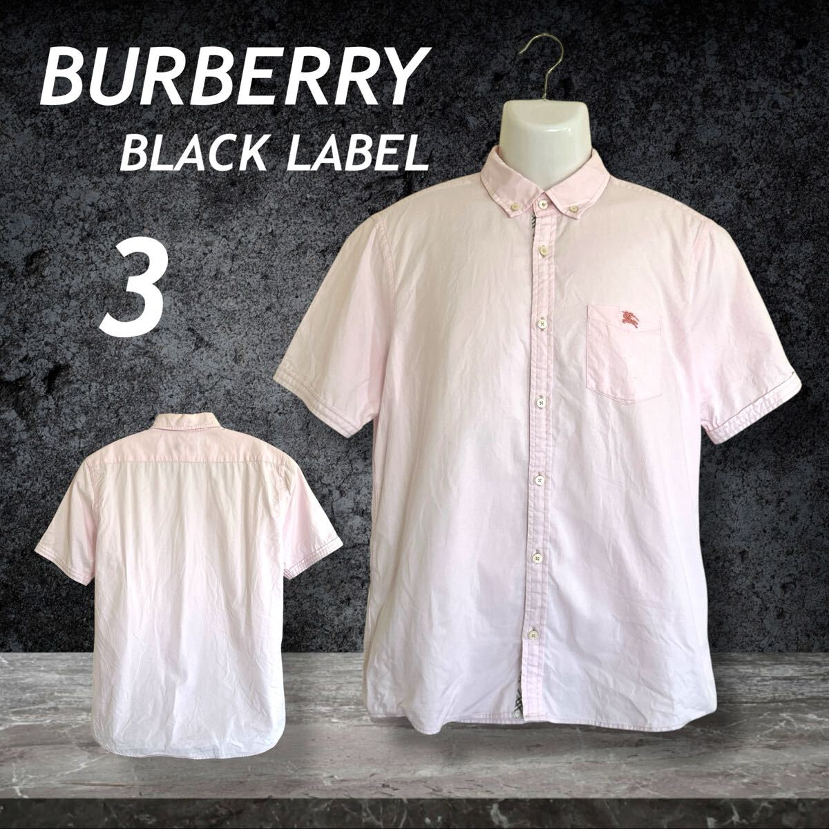 - BURBERRY BLACK LABEL メンズ 半袖シャツ 3 ボタンダウン 刺繍ロゴ 綿 コットン D1M23-322-12 三陽商会 ノバチェック ピンク系 (G034)★