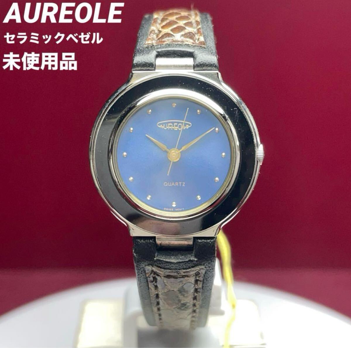 > 90s 未使用 AUREOLE クォーツ セラミックベゼル 純正革ベルト 腕時計 ヴィンテージ アンティーク 稼働