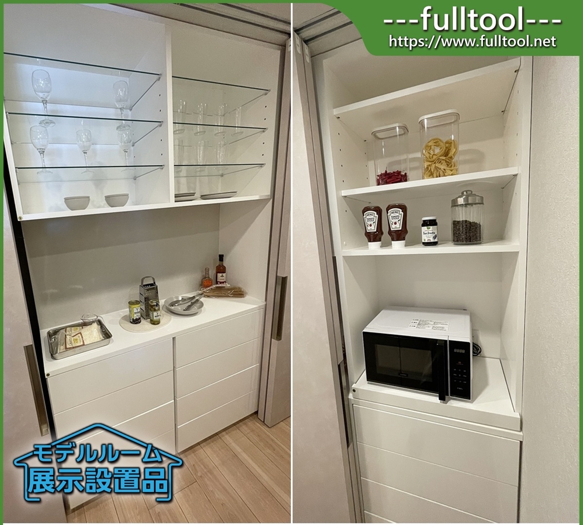 > 【福岡O】システムカップボード 食器棚 キッチン収納 キッチンボード/一体型/W2030×H2200×D350/モデルルーム展示設置品【ERO35】