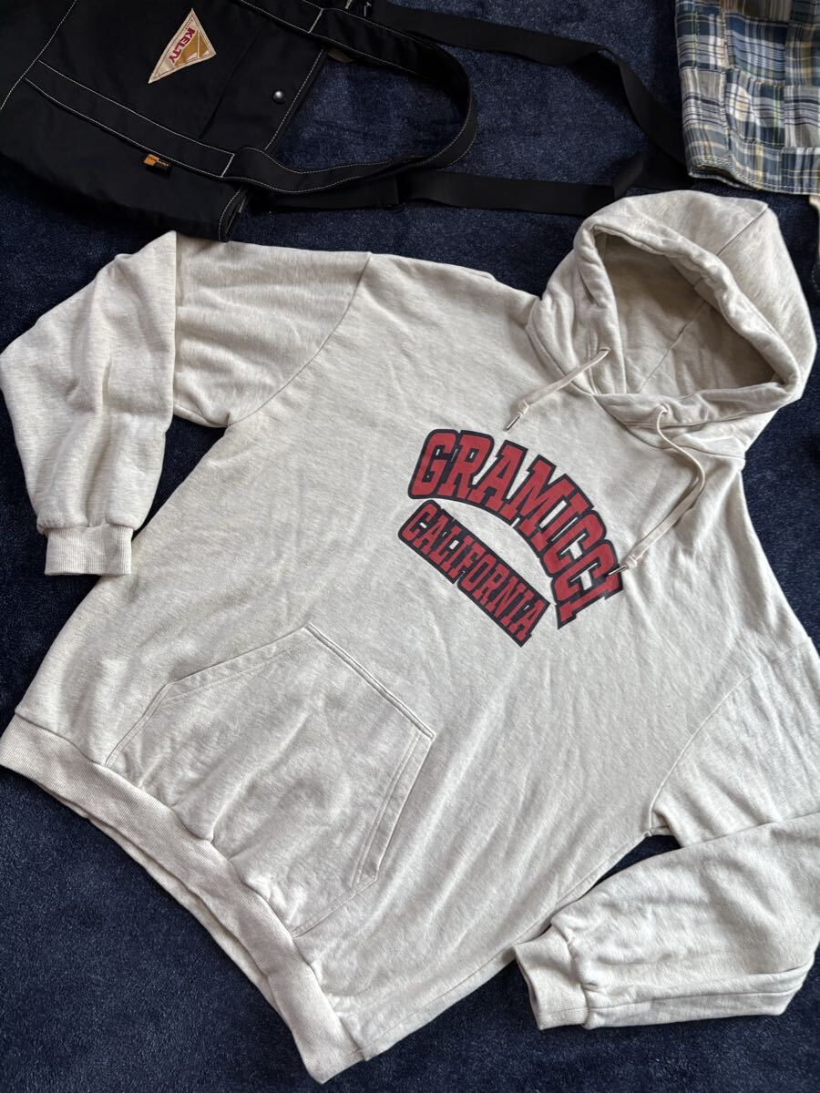 > 超美品 定価11,880円 新品同様 GRAMICCI グラミチ LOGO HOODED SWEAT ロゴパーカー プルオーバー スウエット フーディ sizeXL グレー系