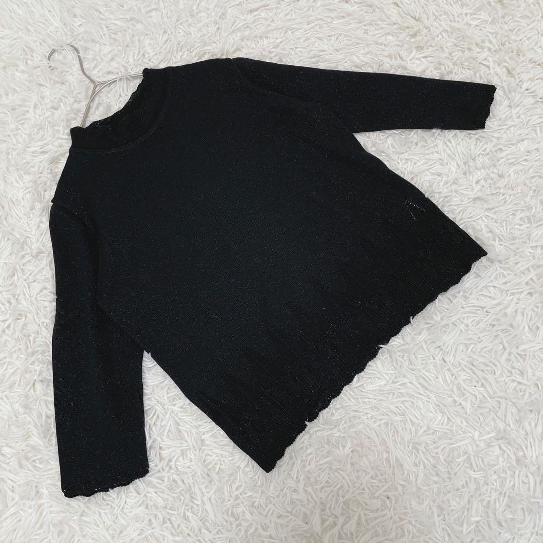 - 日本製 『アデンダ』 ラメ入りハイゲージニット 7分袖 レース切替 エレガント