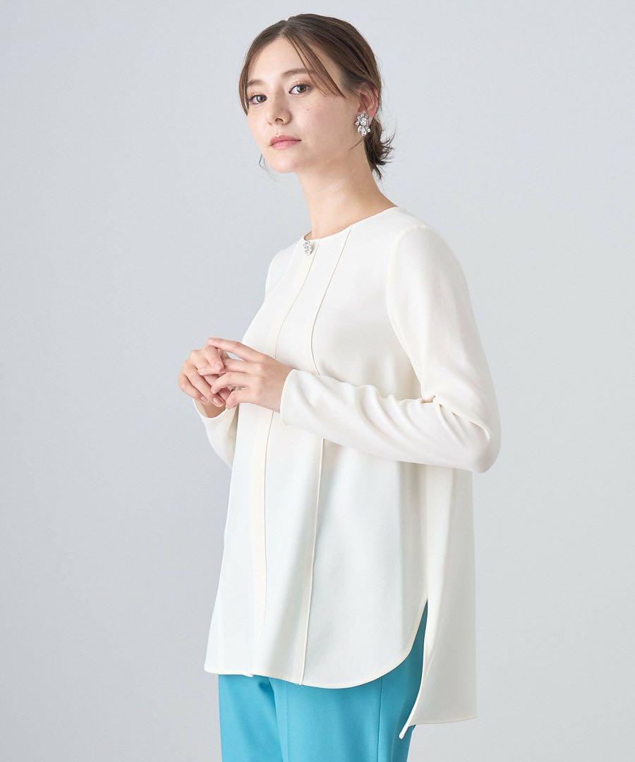- ANAYI アナイ 23AW バックサテンビジューボタン ブラウス シャツ