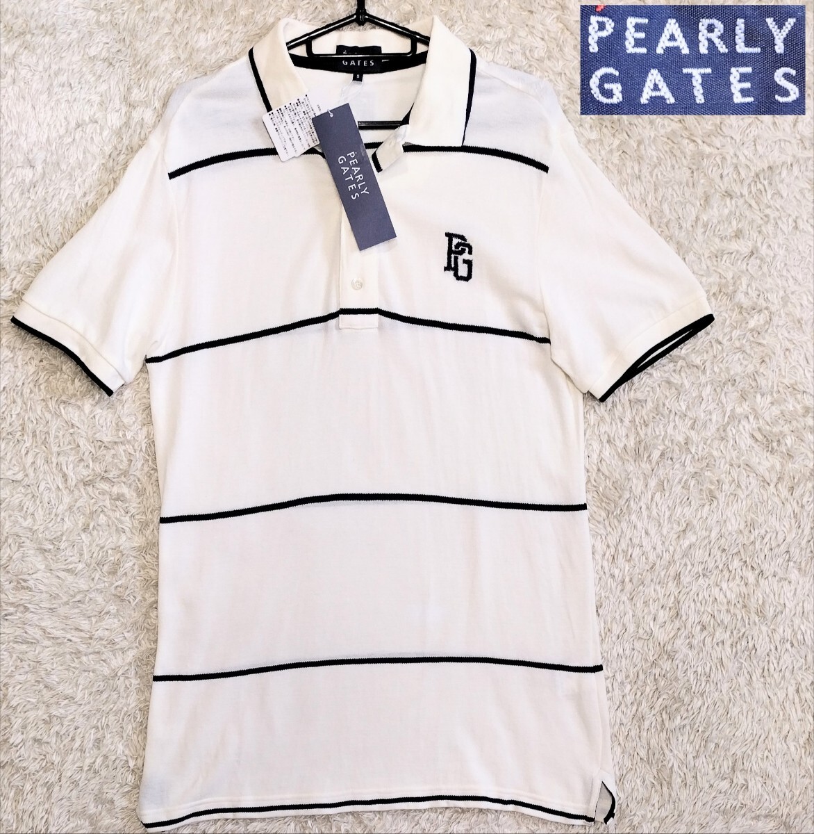 - 【未使用★】サイズ5(L) PEARLY GATES 半袖ボーダーポロシャツ◆オフホワイト☆パーリーゲイツ (7151)