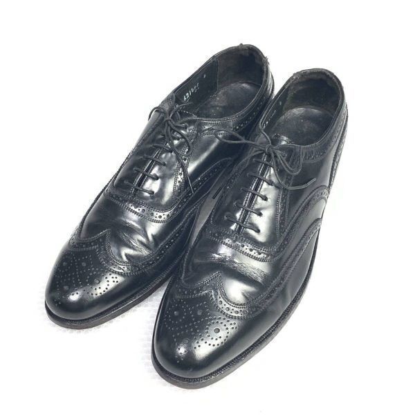 - 1978年製 USA表記なし ビンテージ★フローシャイムFlorsheim★サイズ10 B★26.5~27.5cm★フルブローグ ウイングチップ★黒◆is7-38
