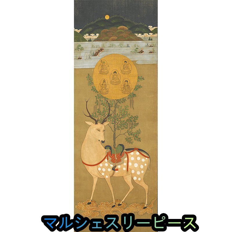 - 春日鹿曼荼羅図 芸術装飾画 掛け軸 仏画 絹布画芯未表装-35 x 97 cm 日本 室町時代 特殊技法高級印刷