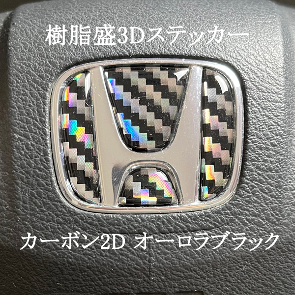- ホンダ ステアリング エンブレム カーボン2Dオーロラブラック SDH-H01 ハンドル用 樹脂盛立体3Dシール HONDA ZEROWIN