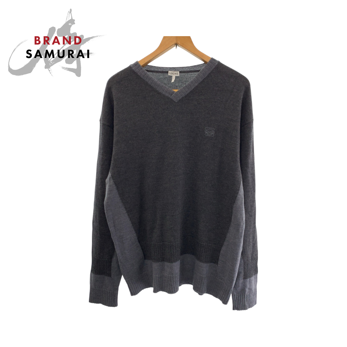 - 美品 LOEWE ロエベ アナグラム サイズL グレー ウール ニット カットソー セーター メンズ 504716