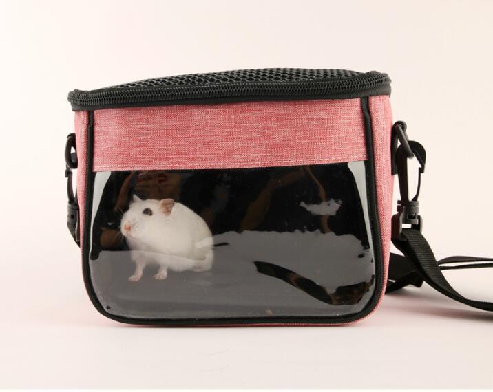 - 新入荷ショルダーバッグ ペット用 小動物用 キャリーバッグ お出かけ ハムスター ラット チンチラ モモンガ うさぎ かばん 透明 ピンク