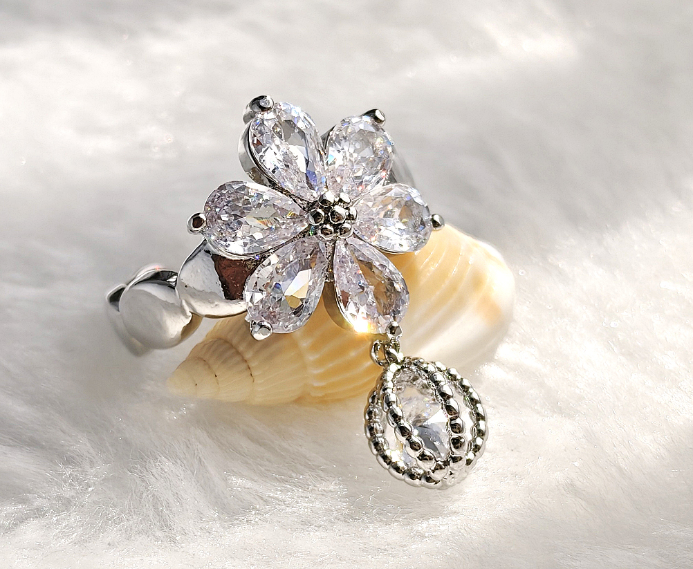 - N2506186◆Bigstone◆【キラキラ花咲*シルバー】個性的な印象*ファッション感覚*オープンリング*11~13号