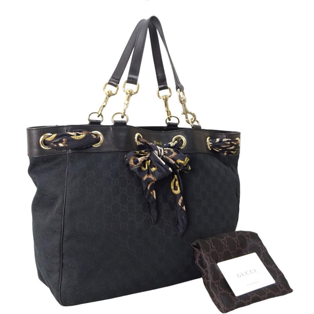 - 本物美品■グッチ■スカーフ トート/GGブラックキャンバス/レザー/153033/トートバッグ/ハンドバッグ